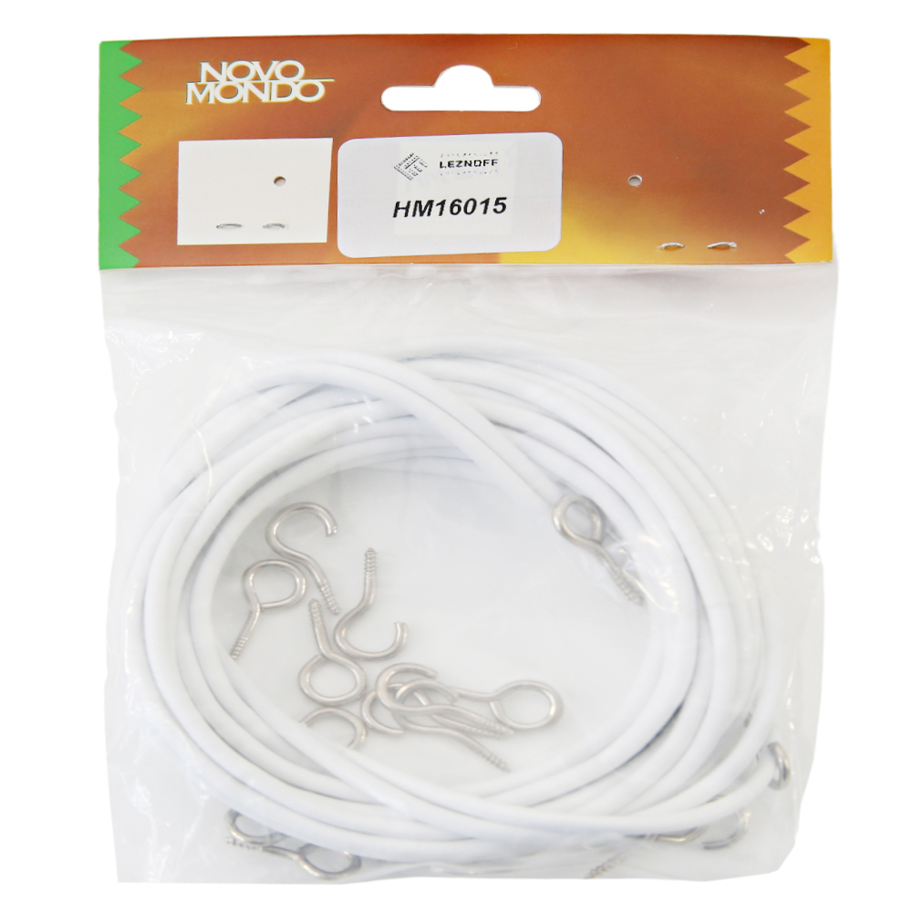 15' Plastic tension wire, incudes 10 hooks and 10 eyes