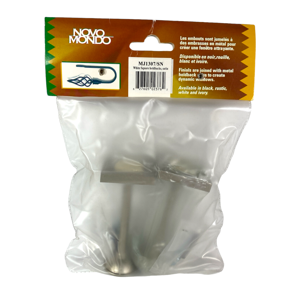 White enamel plated square satin nickel holdback