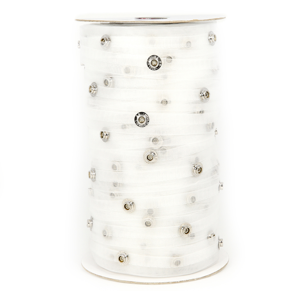 Boutons-pression sur ruban, pliage en vague ("Ripplefold"), 4¼" espacé, tranparent